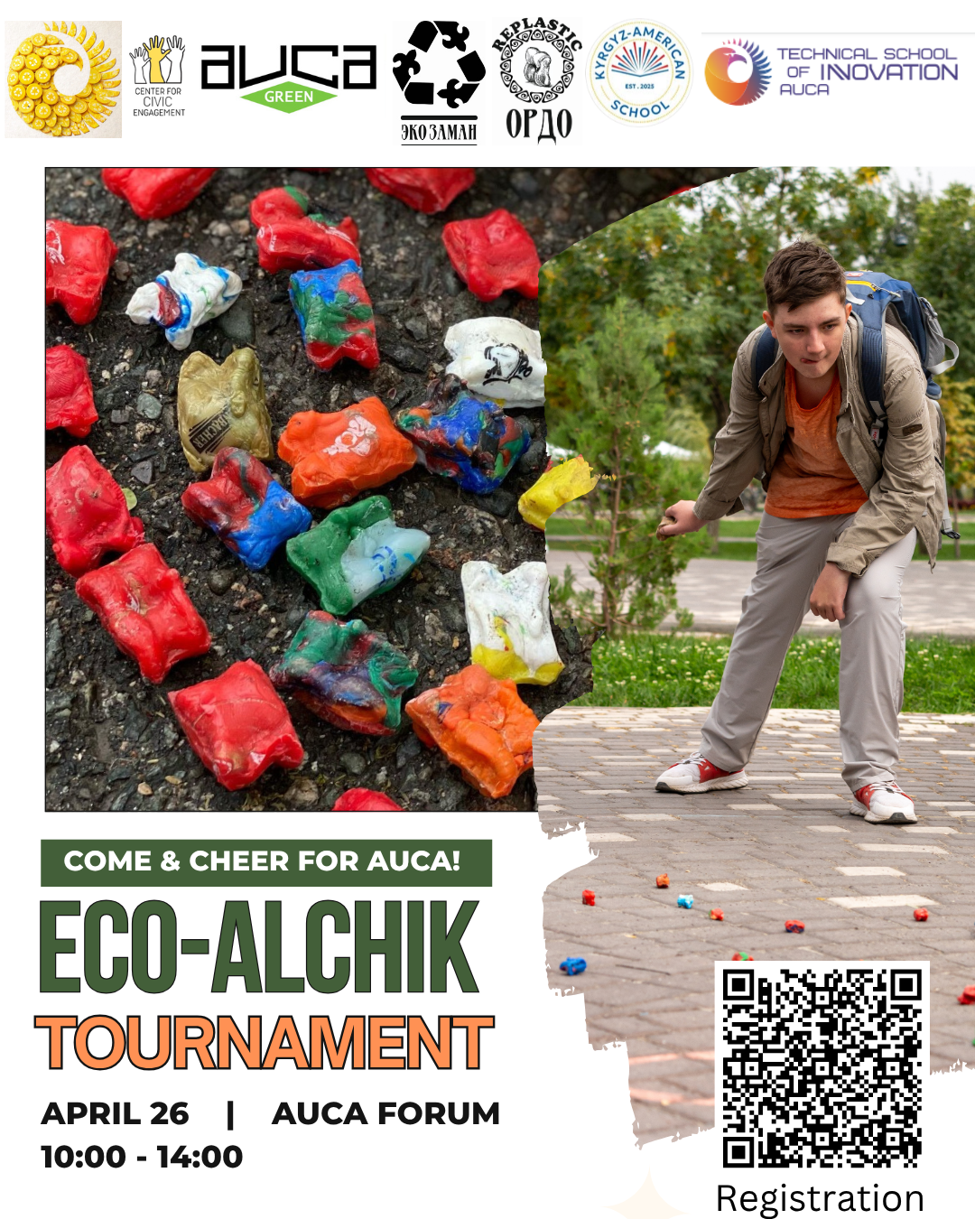 Eco-Alchik / Eco-Ordo is a recycling & eco-cultural project that transforms plastic bottle caps into eco alchiks – elements of a traditional Kyrgyz ordo game, which has also become more eco friendly.